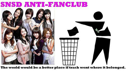 For example, SNSD’s anti-fans, STAND (Stand Till All Nine Disappear) are the most vocal of all all anti-groups. You know it’s bad when your antis have names! 😦